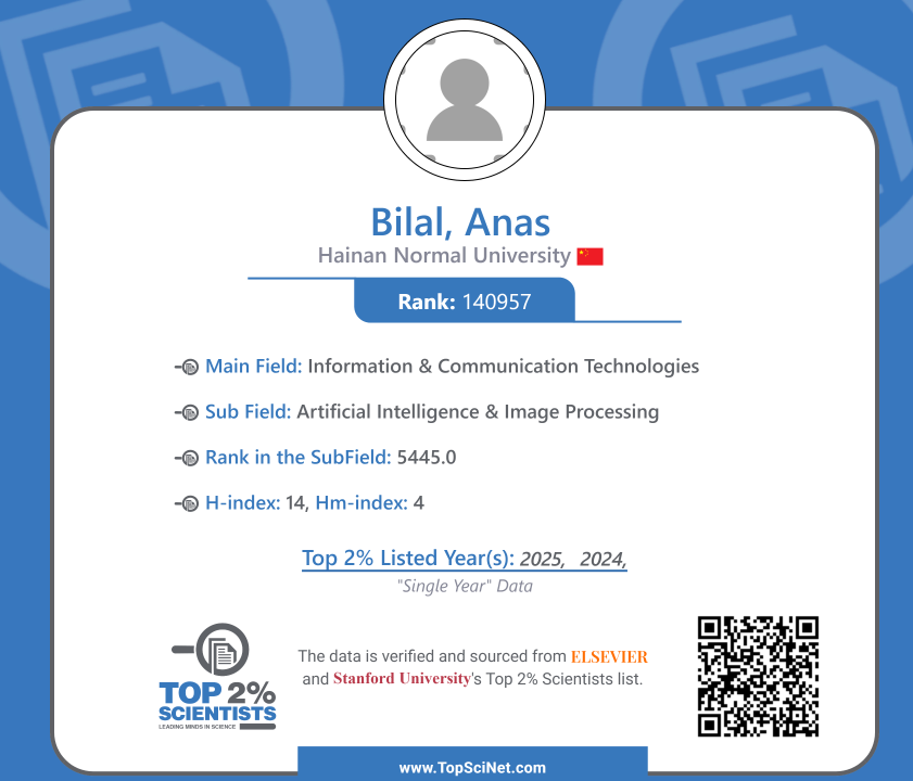 BILAL ANAS博士自2024-2025年已连续两年入围该榜单,今年相较于去年在排名上实现了质的跨越,彰显了我院学者在相关领域深厚的科研积累与广泛的国际学术影响力,同时也是我院践行响应海南省诚邀国际人才“共享新机遇 共建自贸港”的生动案例。信息科学技术学院将以此为契机,吸引集聚更多国际人才参与海南自贸港建设,为推动学科建设高质量发展、服务国家和区域创新驱动发展战略贡献更大力量。