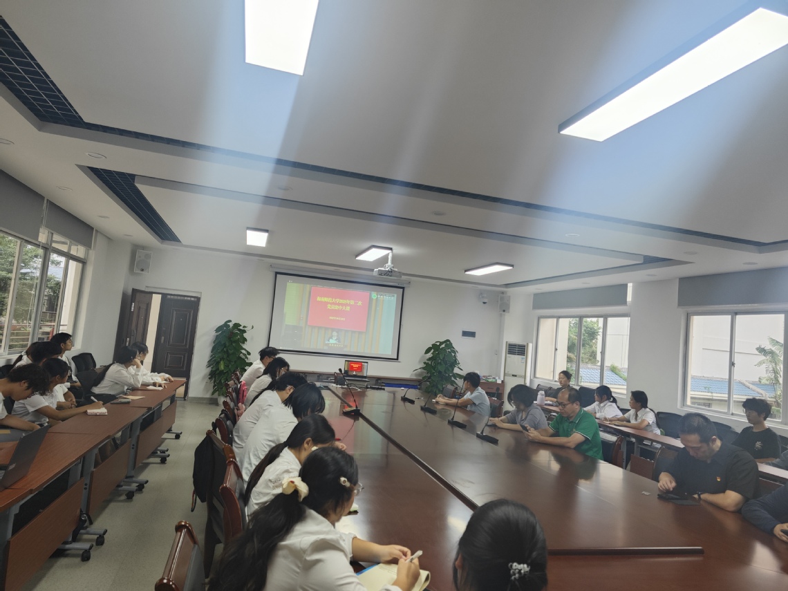 2025年10月21日下午,我院组织全体师生党员参加海南师范大学2025年党员教育培训第二次集中大课,共同听取由中央党校(国家行政学院)分管日常工作的副校长(副院长)谢春涛主讲的“中国共产党与中华民族伟大复兴”专题报告。我院党委书记王觅、副书记朱卫华及师生党员代表在桂林洋校区图书馆一楼会议室主会场参加听课培训,其他党员同志分别在桂林洋校区信息楼213多功能会议室和龙昆南校区田家炳楼101室的分会场参加听课培训。