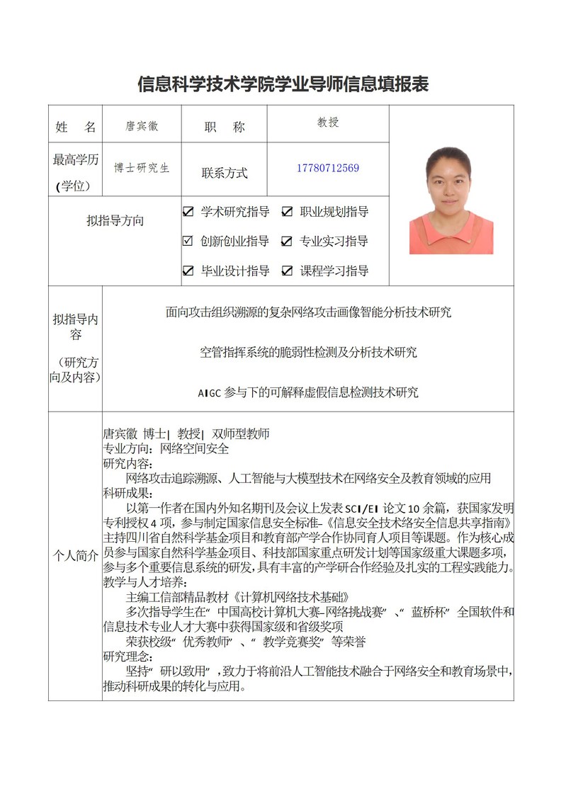 学业导师——唐宾徽