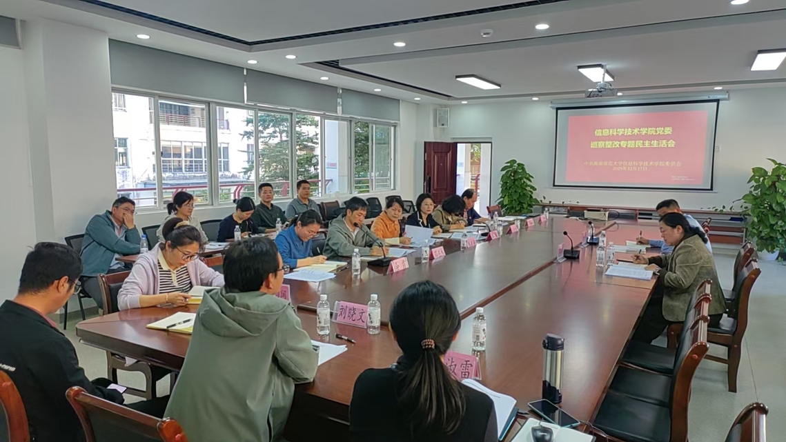 2025年12月17日下午,我院党委在桂林洋校区信息楼213多功能会议室召开巡察整改专题民主生活会。会议紧扣巡察反馈意见,全面对照检查,深入剖析根源,严肃开展批评与自我批评,明确整改方向和举措。学校第一巡察组组长黄武、副组长王国英同志到会指导。学院党委书记王觅主持会议,学院党委领导班子全体成员出席会议,相关列席人员参加会议。