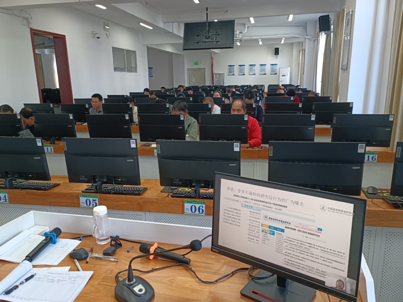 2025年12月23日下午,在龙昆南校区实验楼七楼机房,根据学校人事处关于开展教师思想政治和师德素养提升周活动安排,我院召开全体教职工大会,集中观看中国高等教育培训中心的视频课程。